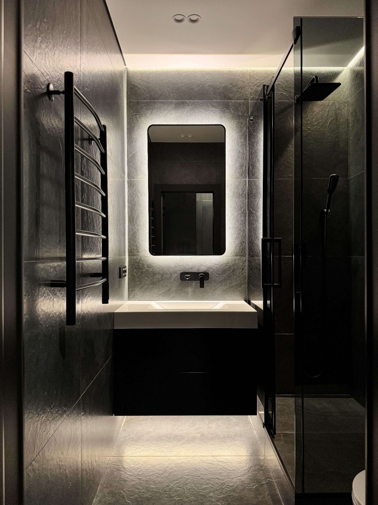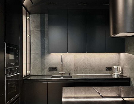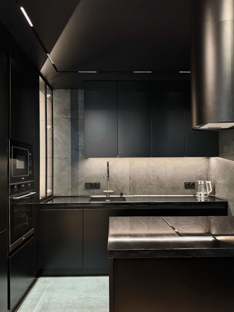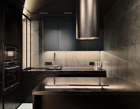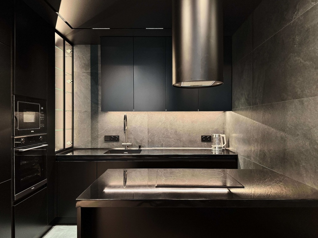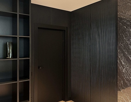 Квартира в современном стиле по нашему дизайн-проекту, основой которой стал черный цвет и все его оттенки.
