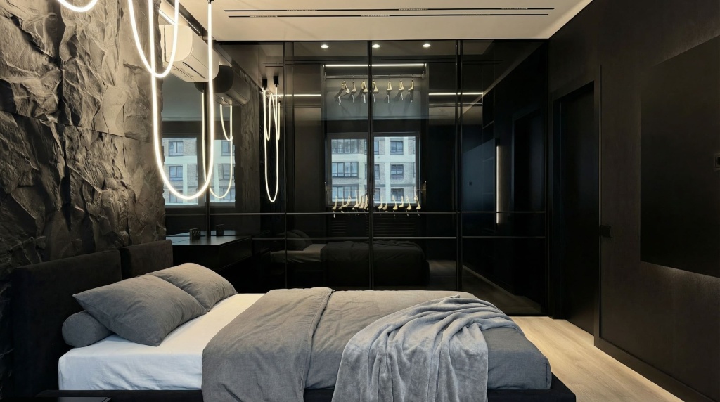 Современный, монохромный интерьер для ценителей минимализма.