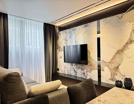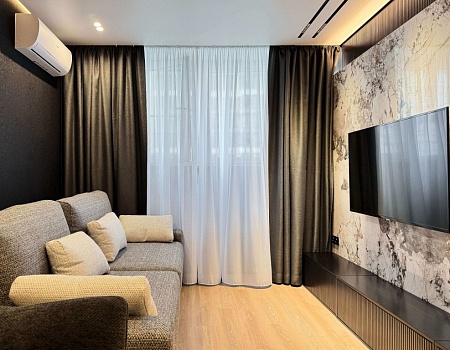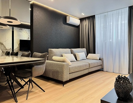 Невероятно уютная и стильная квартира в современном стиле. Встроенное трековое освещение, крупноформатный керамогранит, просторная душевая и многое другое.