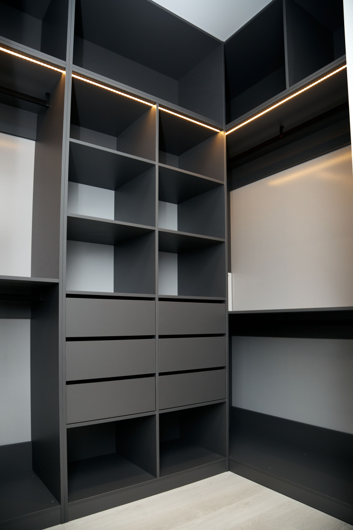 Квартира в современном стиле по нашему дизайн-проекту, основой которой стал черный цвет и все его оттенки.