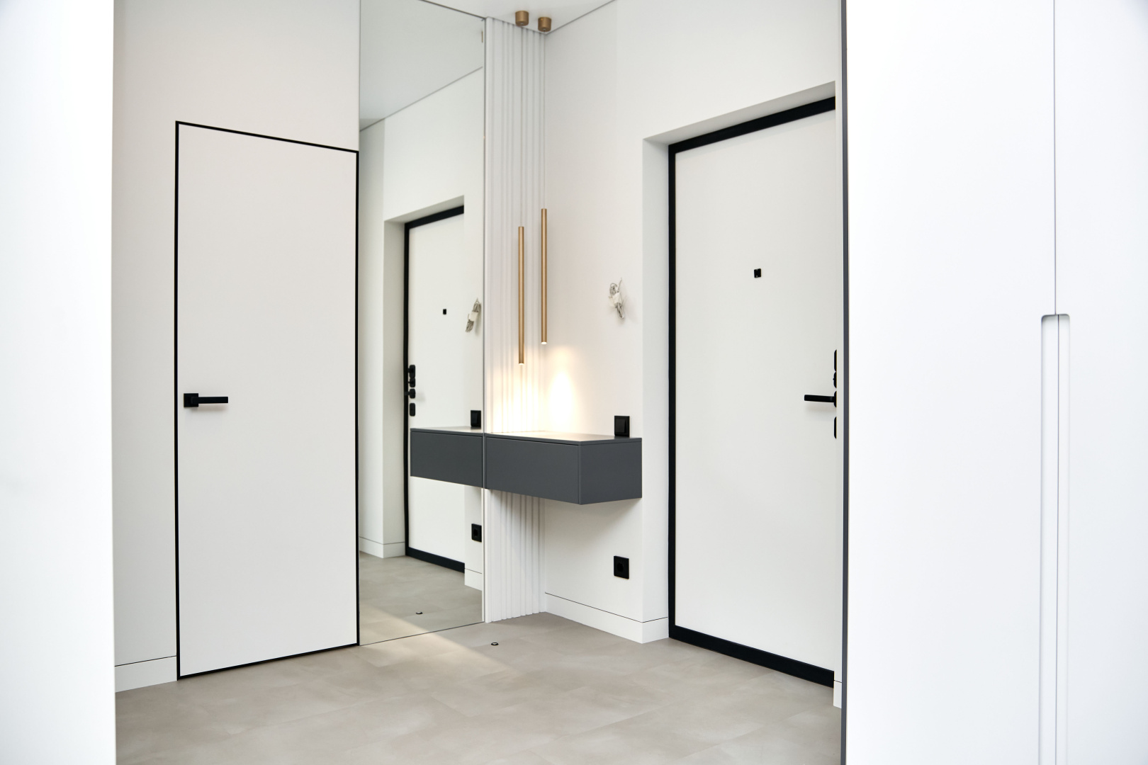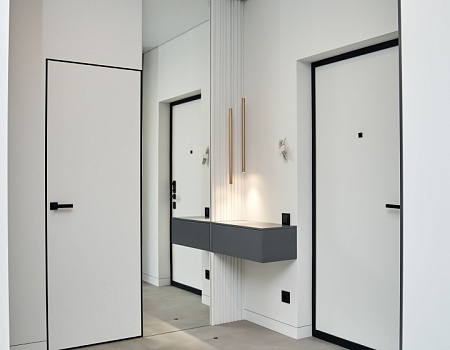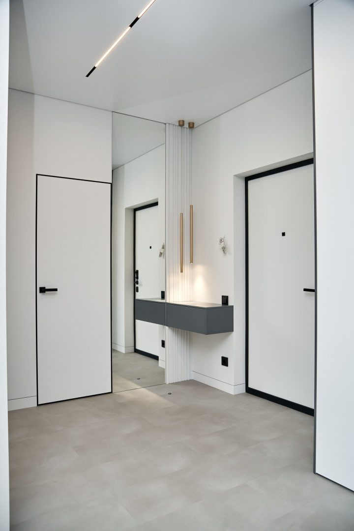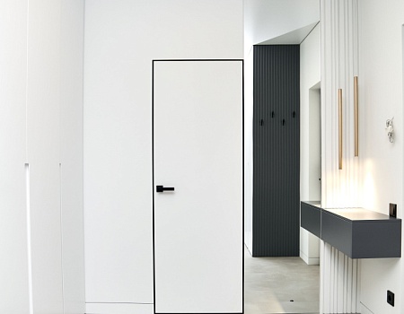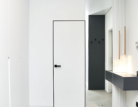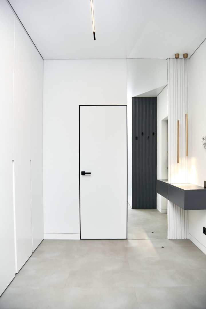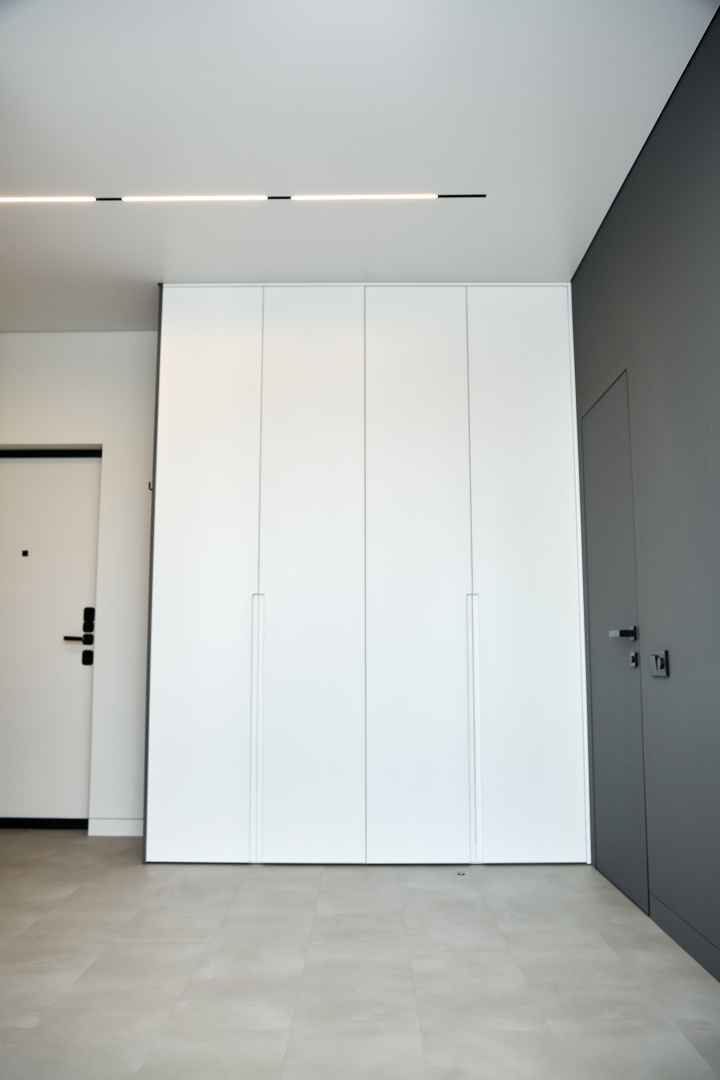 Скрытые двери, обилие белого цвета, трековый свет: проект в минимализме для ценителей современных интерьеров.