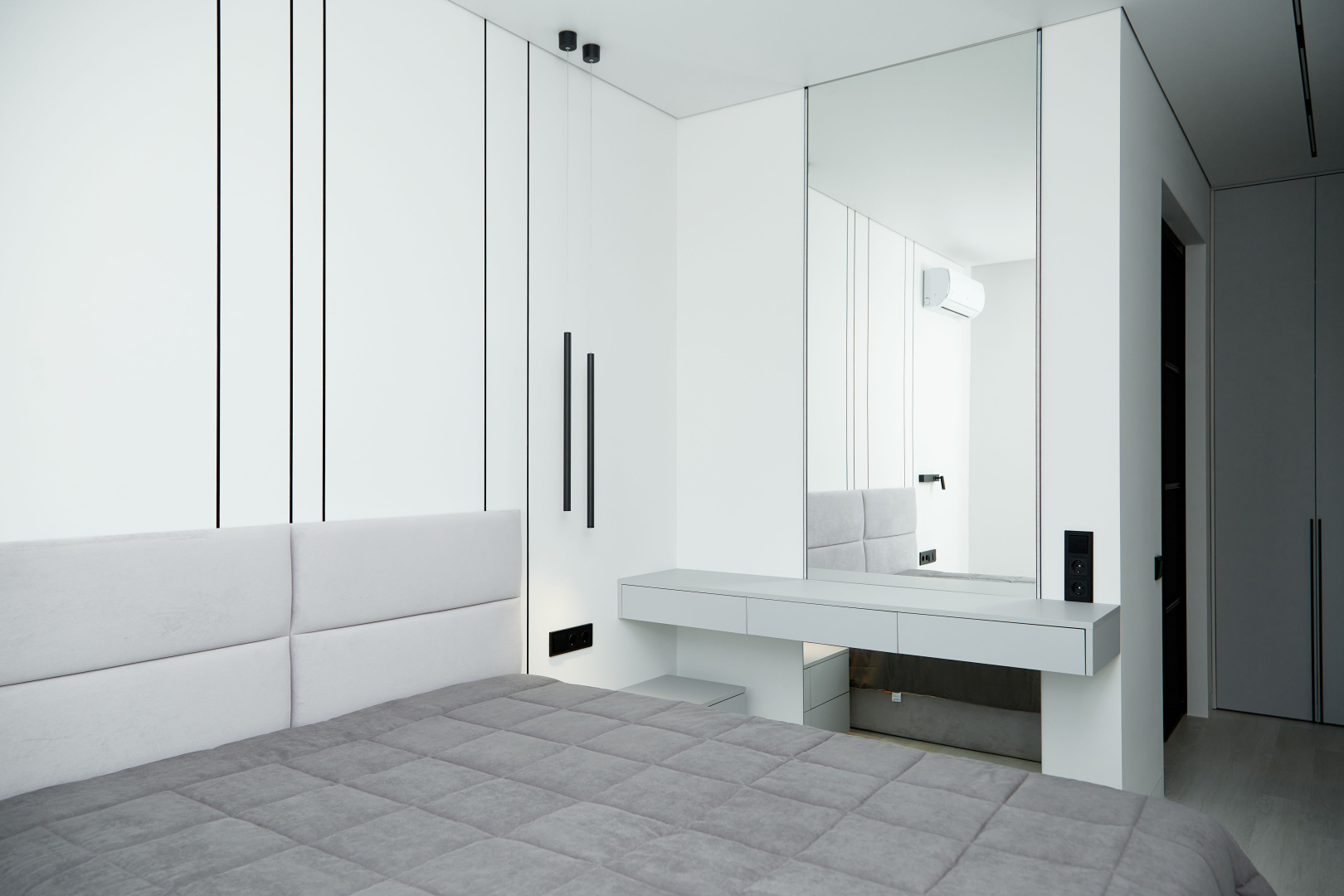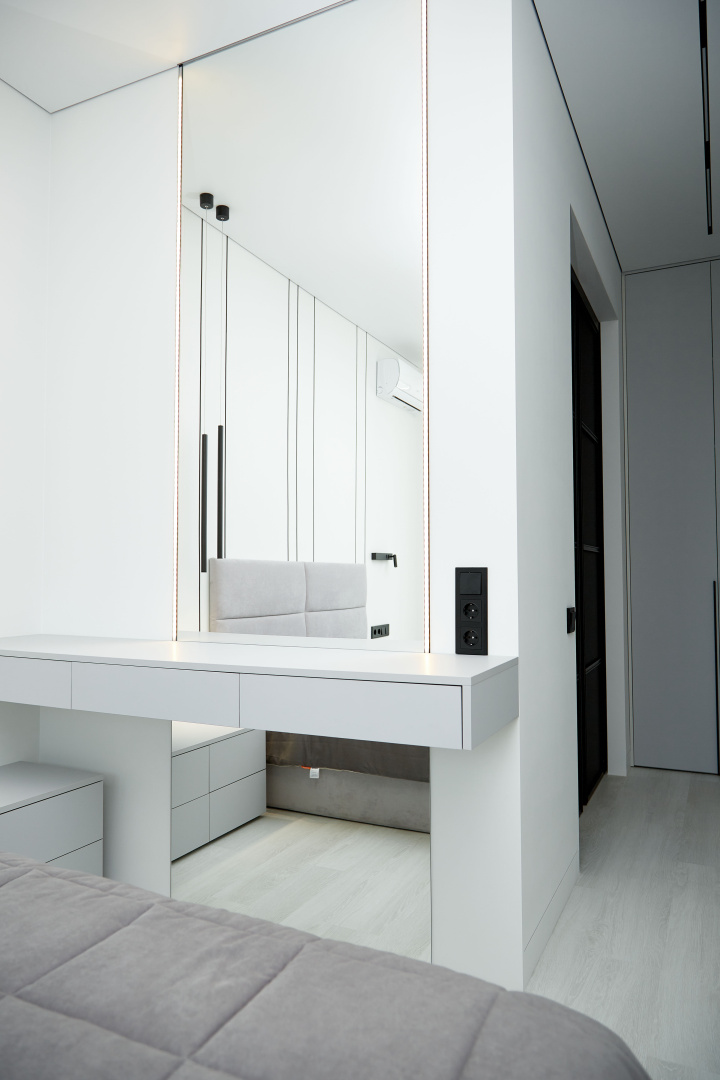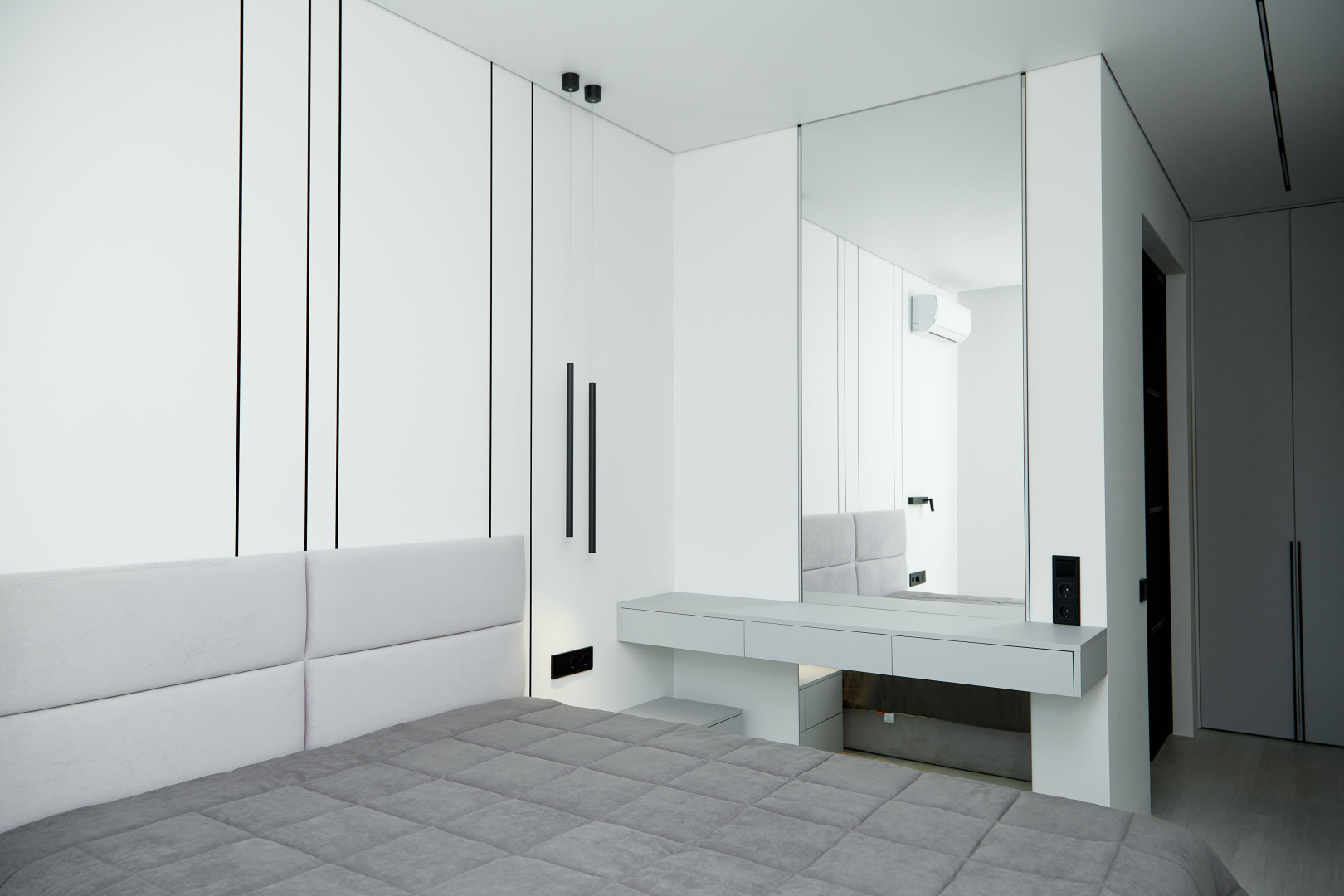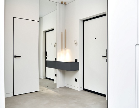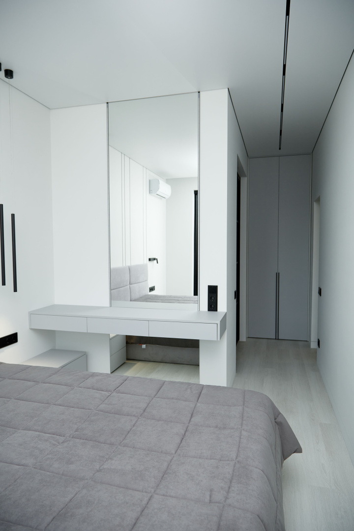 Скрытые двери, обилие белого цвета, трековый свет: проект в минимализме для ценителей современных интерьеров.