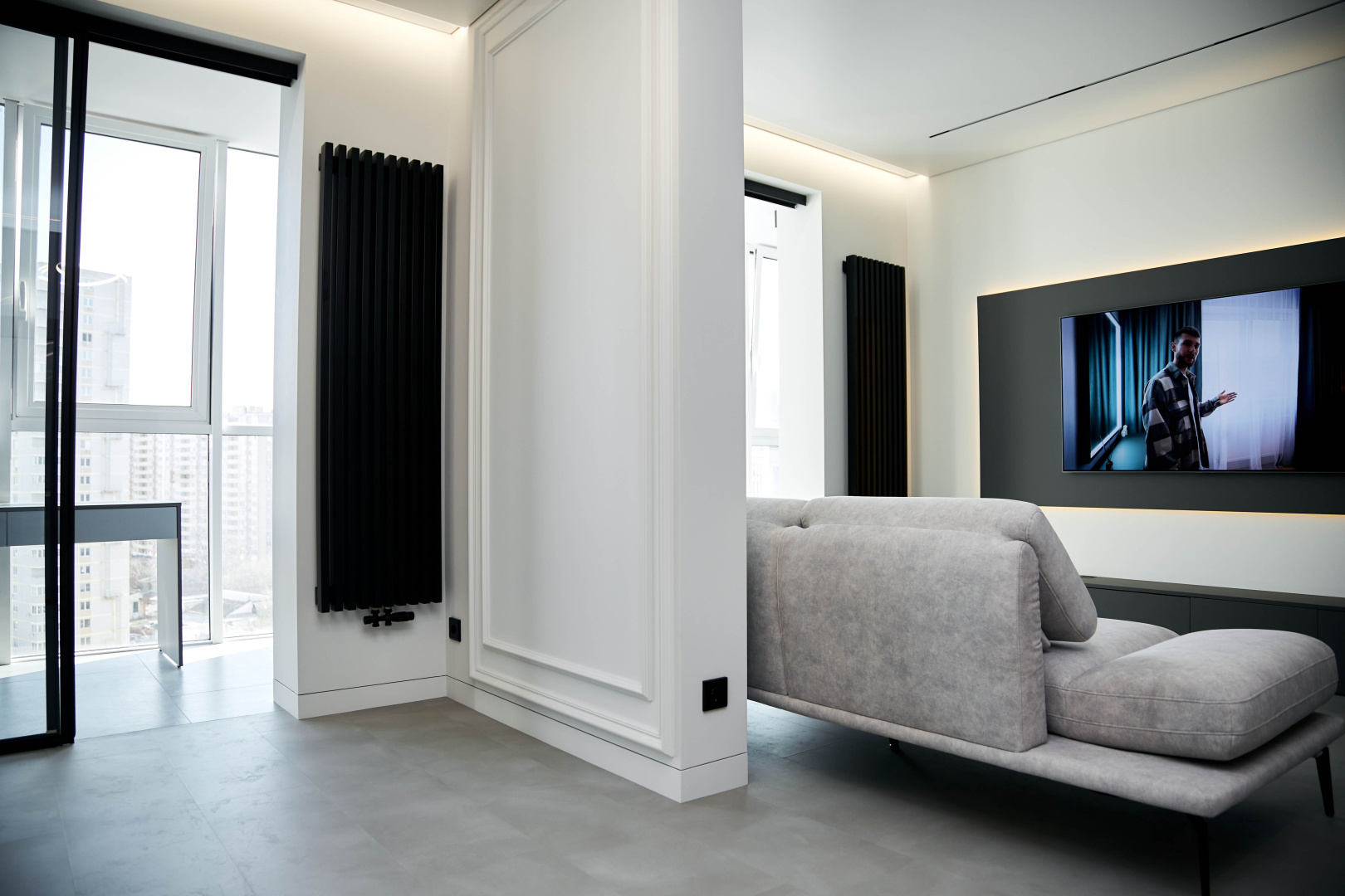 Трубчатые радиаторы, мастер-спальня, антивандальная краска: современная квартира по готовому дизайн-проекту.