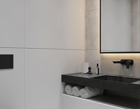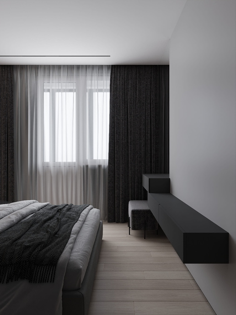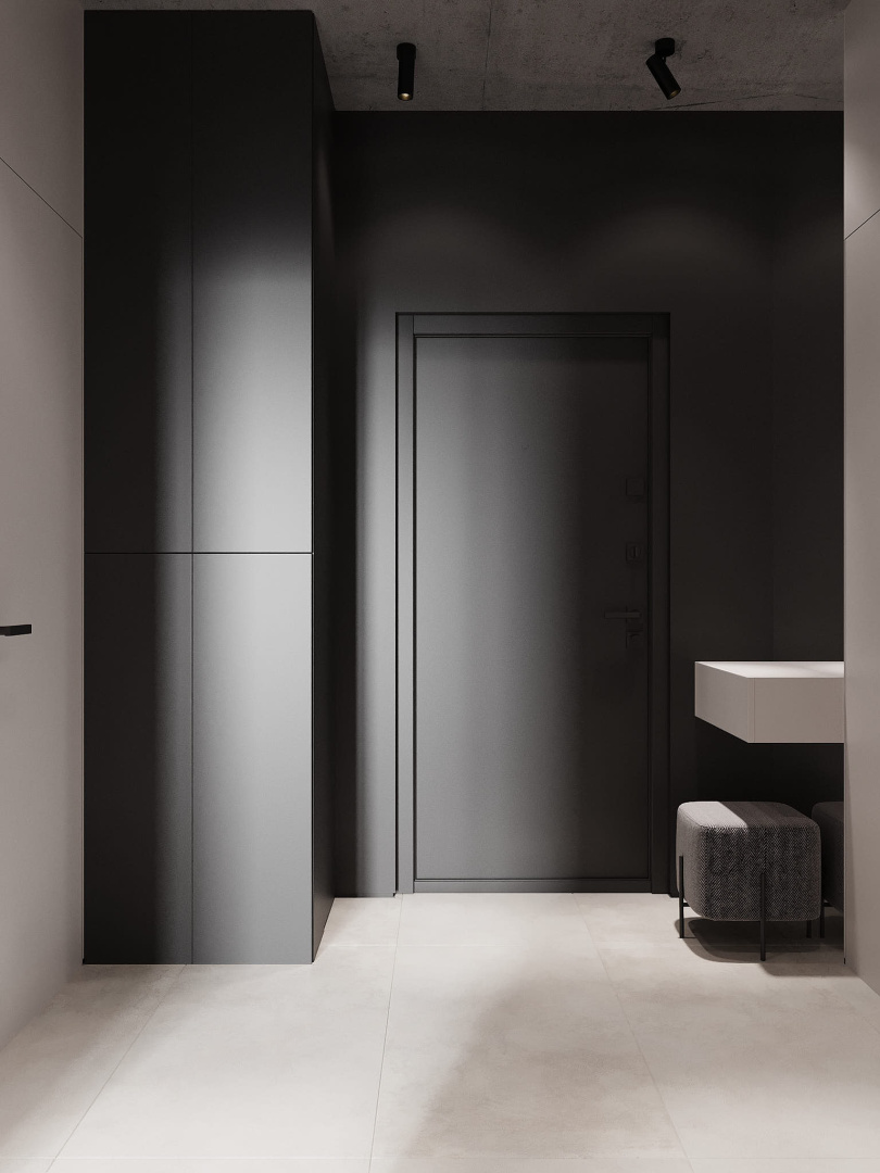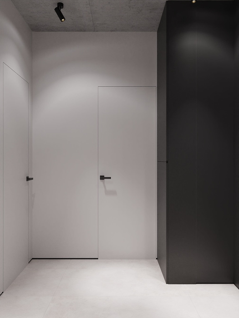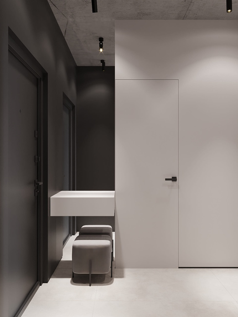 Современный, монохромный интерьер для ценителей минимализма.