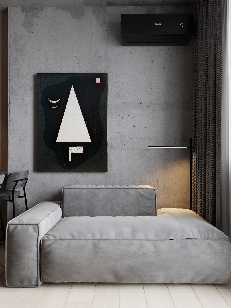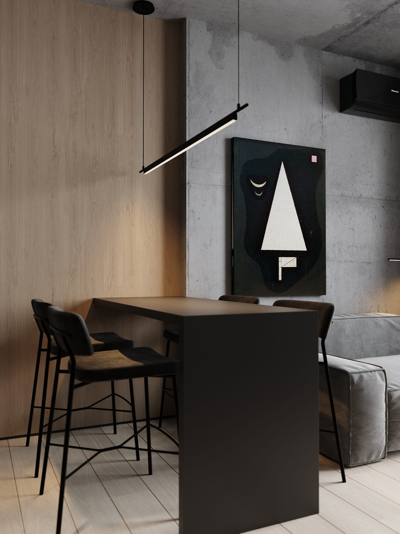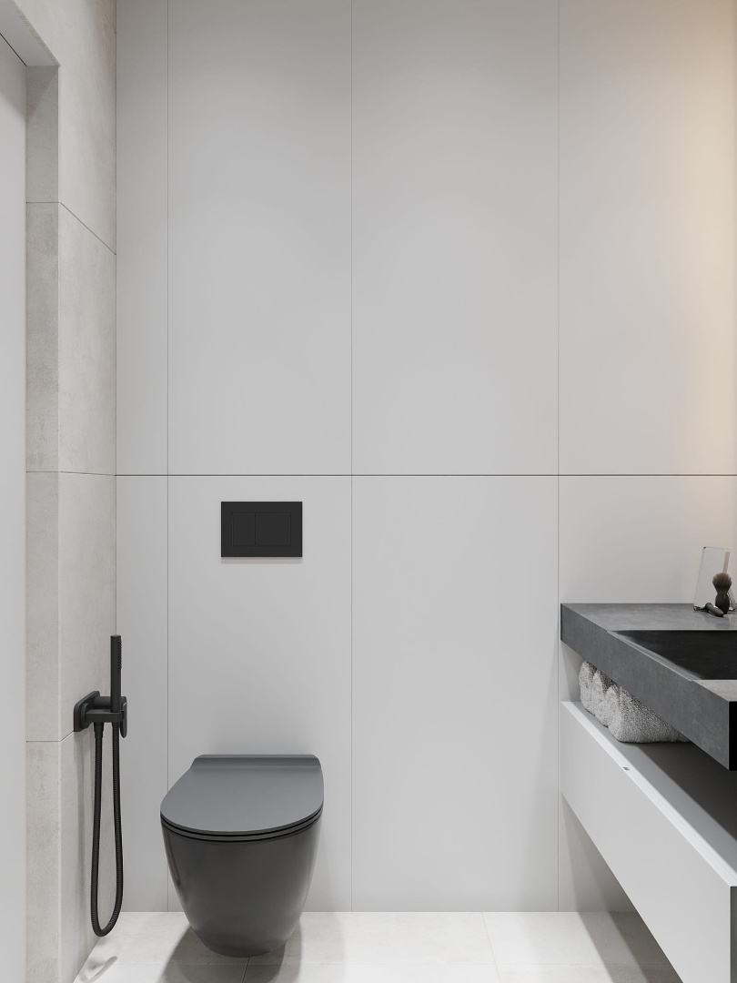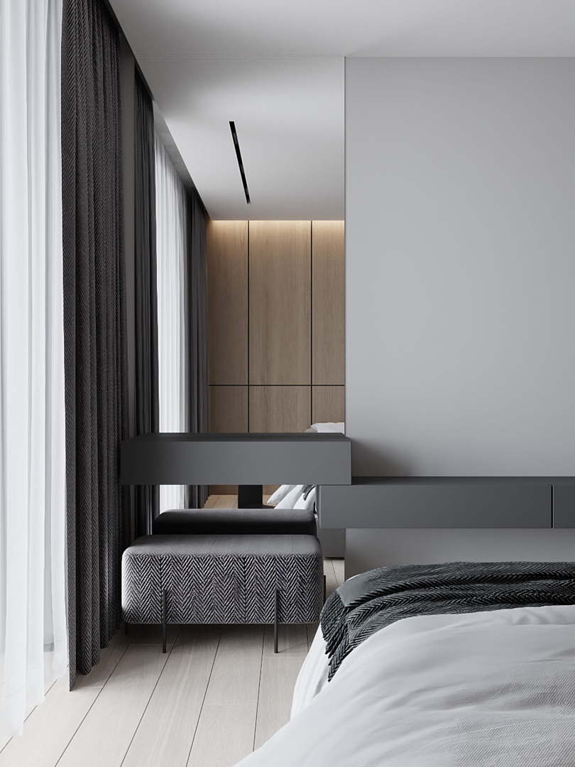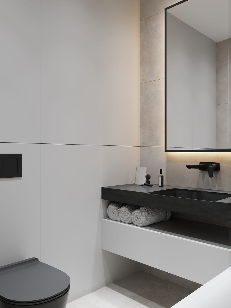 Современный, монохромный интерьер для ценителей минимализма.