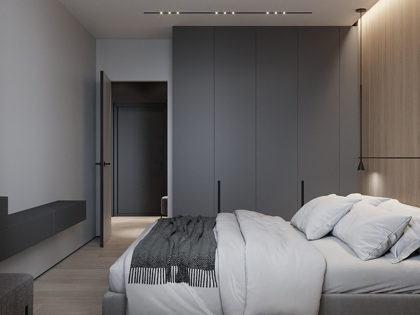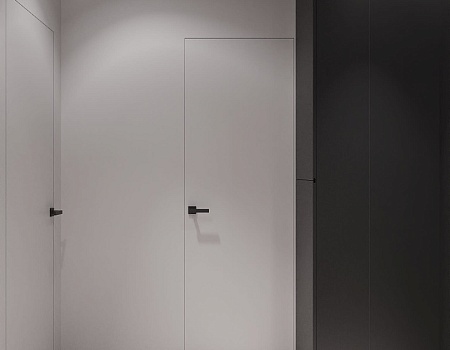 Скрытые двери, обилие белого цвета, трековый свет: проект в минимализме для ценителей современных интерьеров.