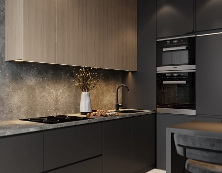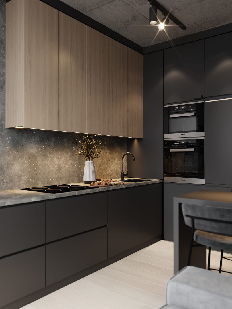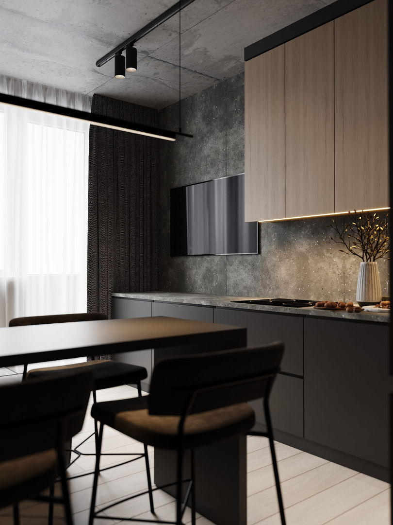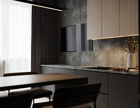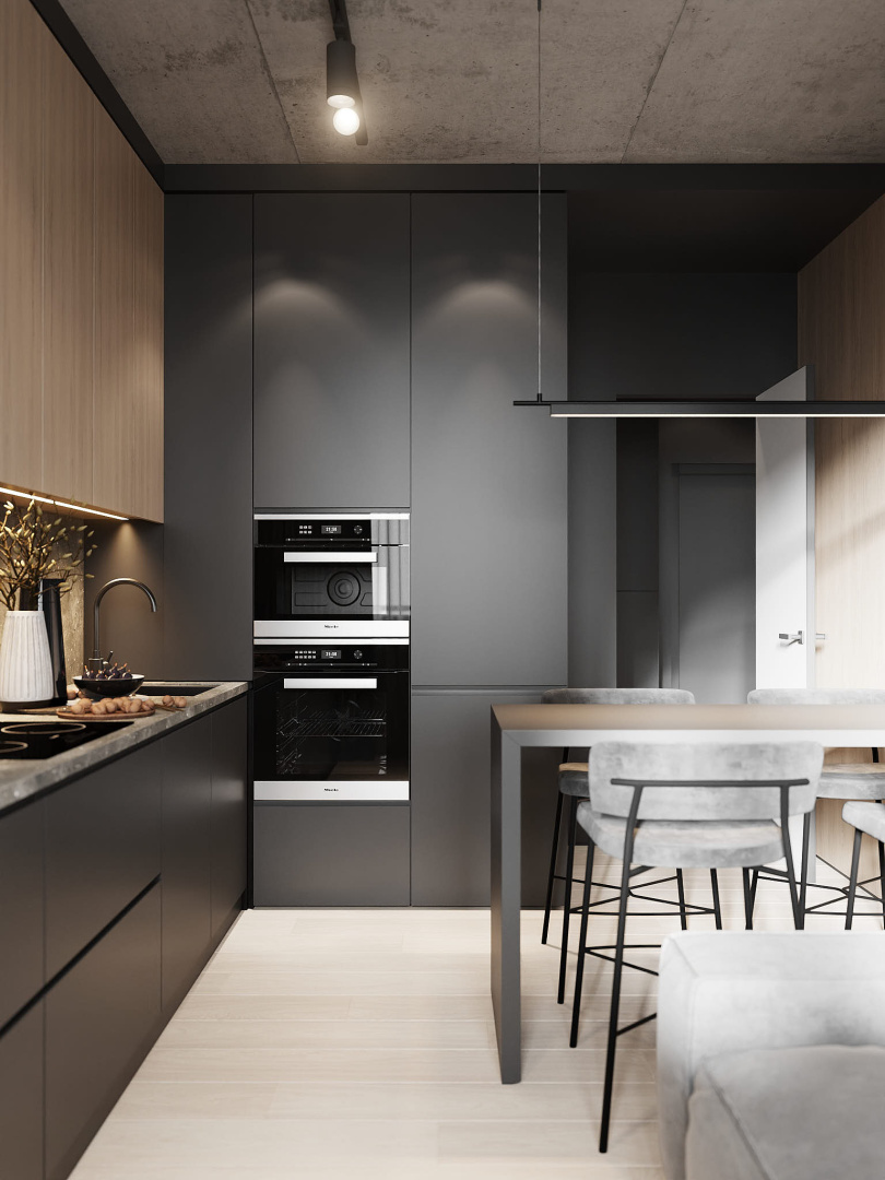 Квартира в современном стиле по нашему дизайн-проекту, основой которой стал черный цвет и все его оттенки.