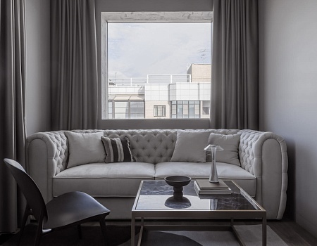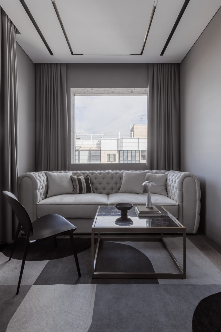 Современный, монохромный интерьер для ценителей минимализма.