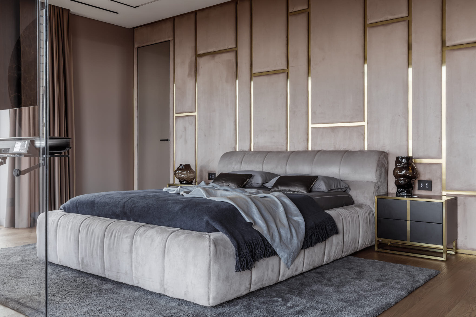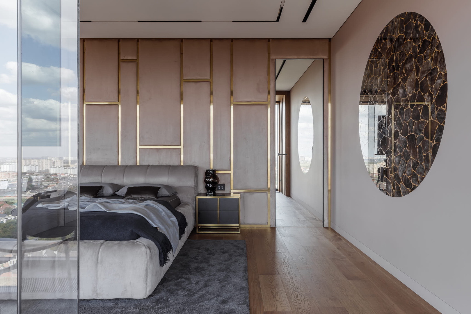 Запоминающийся проект с необычной «фишкой» — большой ванной, которая разместилась в спальной комнате.