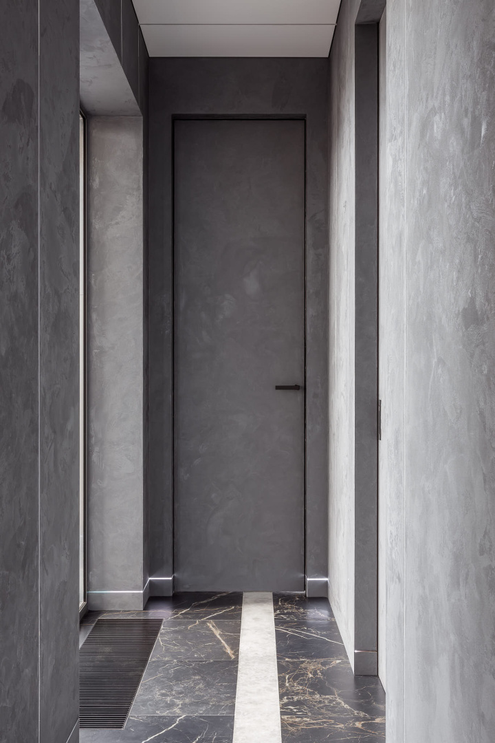 Скрытые двери, обилие белого цвета, трековый свет: проект в минимализме для ценителей современных интерьеров.