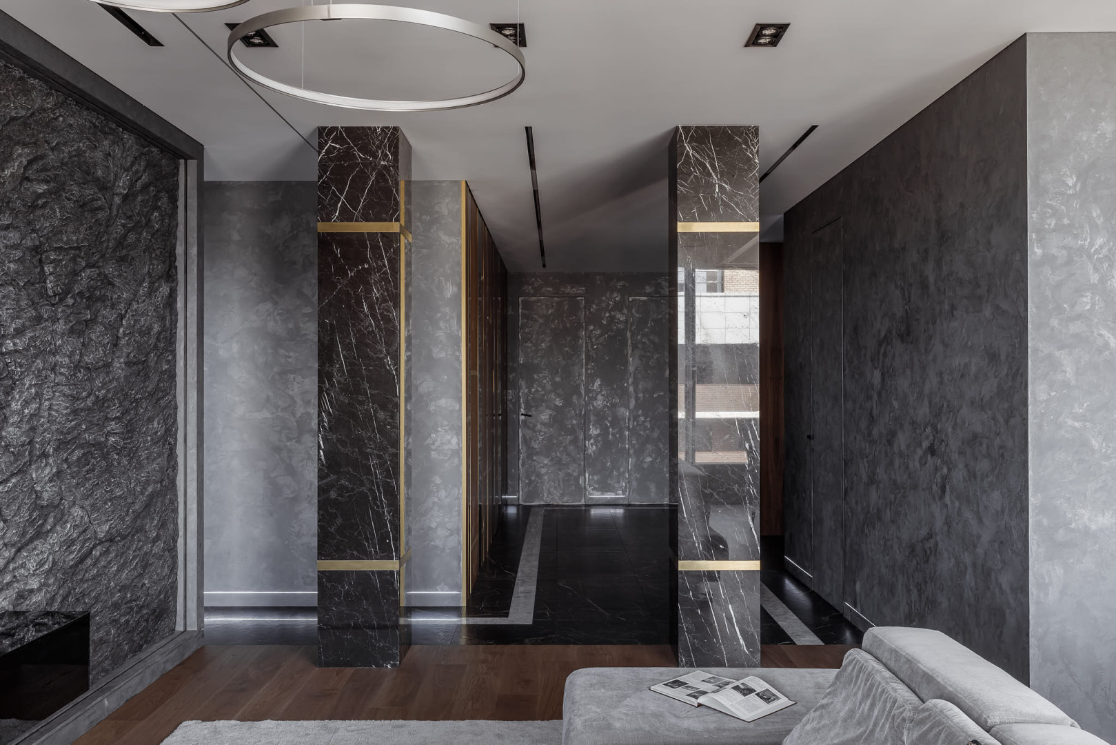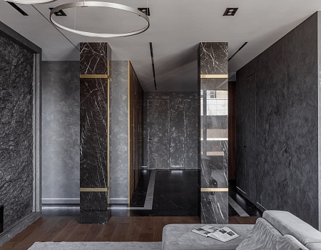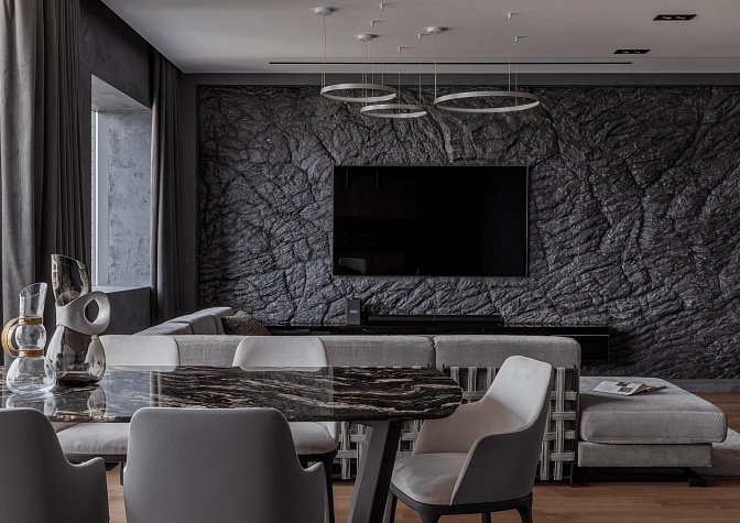 Мрамор, гипсовые панели, декоративная штукатурка: «нескучный» интерьер в современном стиле.