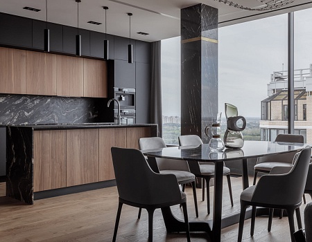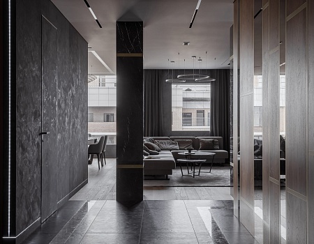 Квартира в современном стиле по нашему дизайн-проекту, основой которой стал черный цвет и все его оттенки.